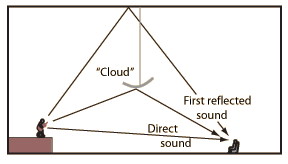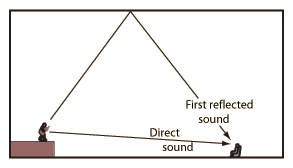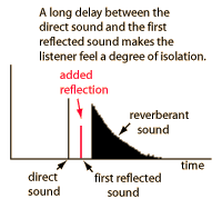 Echoes in AuditoriumsThe term echo in an auditorium refers to a reflected sound which stands out significantly over the normal reverberant sound of the auditorium. It is not sufficient in this context to just define an echo as a reflected sound, since the entire reverberant sound field is a collection of many reflected sounds. The term echo in auditorium acoustics may be the prominant reflection from a refective flat back wall, often called a 'slapback' echo. Distracting echoes arise from focusing surfaces, which should therefore be avoided in auditoriums. In fact, it is good practice to include surfaces or structures which break up any large reflective surface. The columns, decorative woodwork, and general construction of the fine European music halls gives a good mix of reflected sound for more even dispersion of sound. Modern structures tend toward large smooth plaster or concrete surfaces which give problems with echoes.