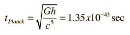Era of 1 Planck TimeIn the era around one Planck time, 10-43 seconds, it is projected by present modeling of the fundamental forces that the gravity force begins to differentiate from the other three forces. This is the first of the spontaneous symmetry breaks which lead to the four observed types of interactions in the present universe. Looking backward, the general idea is that back beyond 1 Planck time we can make no meaningful observations within the framework of classical gravitation. One way to approach the formulation of the Planck time is presented by Hsu. One of the characteristics of a black hole is that there is an event horizon beyond which we can obtain no information - scales smaller than that are hidden from the outside world. For a given enclosed mass, this limit is on the order of ![]() where G is the gravitational constant and c is the speed of light. But from the uncertainty principle and the DeBroglie wavelength, we can infer that the smallest scale at which we could locate the event horizon would be the Compton wavelength. ![]() Equating L and λ, we obtain a characteristic mass called the Planck mass: ![]() Substituting this mass back into one of the length expressions gives the Planck length ![]() and the light travel time across this length is called the Planck time: ![]() Keep in mind that this is a characteristic time, so its order of magnitude is what should be noted. Sometimes it is defined with the wavelength above divided by 2π, so don't worry about the number of significant digits.