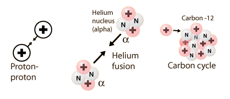 The enormous luminous energy of the stars comes from nuclear fusion processes in their centers. Depending upon the age and mass of a star, the energy may come from proton-proton fusion, helium fusion, or the carbon cycle. For brief periods near the end of the luminous lifetime of stars, heavier elements up to iron may fuse, but since the iron group is at the peak of the binding energy curve, the fusion of elements more massive than iron would soak up energy rather than deliver it. While the iron group is the upper limit in terms of energy yield by fusion, heavier elements are created in the stars by another class of nuclear reactions. This nuclear synthesis of elements heavier than iron uses energy rather than supplies it.