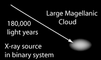 Magellanic Cloud Black HoleAn object called LMC X-3 discovered in the Large Magellanic Cloud in 1982 had all the earmarks of a black hole. How can "black hole" status be verified? ![]()