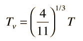 Neutrinos in the Early UniverseNeutrinos joined Electromagnetic radiation as the dominant form of energy in the early universe, becoming more dominant as one models earlier times in the big bang. To assess the energy density in neutrinos, it would be helpful to place it in a form similar to the energy density in radiation, ![]() Applying all the statistical factors gives a neutrino energy density expression ![]() Another difference for the neutrinos is the fact that their effective temperature at the present time is different from the 2.725K of the cosmic microwave background. Analysis of the neutrino temperature leads to the prediction that the neutrino temperature is