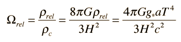 Relativistic Particle Density ΩRelNeutrinos joined Electromagnetic radiation as the dominant form of energy in the early universe, becoming more dominant as one models earlier times in the big bang. In characterizing the effective density of the present universe, the mass of the neutrinos is generally neglected, and they are combined with photons as the effective density of the relativistic particles. The combination of the radiation energy density ![]() ![]() ![]() ![]() ![]() ![]() ![]()