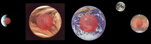 The Formation of the MoonThe compositions of the four inner "rocky" planets are similar with Mercury at density 5.4 g/cm3, Venus at 5.2, Earth at 5.5 and Mars at 3.9 g/cm3. This is interpreted as evidence of a core of iron and nickel, with Mars having a smaller core. Even the largest meteorites often show iron/nickel cores, so that the iron core seems like a signature for the formation of massive objects in the inner part of the solar system.