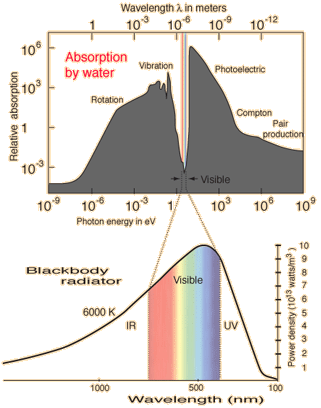 The light spectrum of the Sun coincides remarkably with the narrow band of wavelengths that makes up the transmission window of water vapor in the atmosphere.