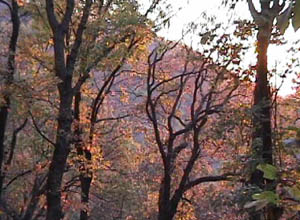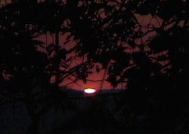 ![]() Watching through the viewfinder of the video camera, I was surprised to see the distinct green flash just before the sun disappeared. On the digital video camera, only two frames showed evidence of the green light, so only 1/15 of a second showed the phenomenon. To be sure, the image above is not very convincing, but if you look closely, you will see a hint of green at the top of the sun image. It was much more dramatic through the viewfinder. I never expected to be able to see it over a wooded mountain - I had heard reports only of sea views and views over bare rock mountains. |