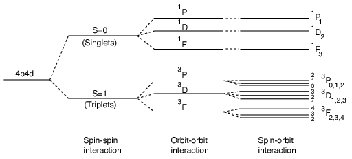 Influences on Atomic Energy Levels![]() Adapted from Leighton. Energies are not to scale. The labeling of the diagrams follows the scheme of the spectroscopic notation.