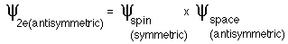 Spin-Spin InteractionThe effect of the spin-spin interaction is noted in Hund's rule #1. If you have two electrons, then the state in which their spins are parallel (S=1, triplet state) will be lower in energy than the state in which their spins are antiparallel (S=0, singlet state). This result is correlated with the fact that the two electrons are identical fermions, and a wavefunction which describes the pair must be antisymmetric with respect to exchange of the electrons ( a requirement of the Pauli exclusion principle). The wavefunction can be considered to be the product of the space and spin wavefunctions: ![]() The fact that the spins are parallel makes the spin part of the wavefunction symmetric, and forces the space part to be antisymmetric. An anti-symmetric space wavefunction for the two electrons implies a larger average distance between them than a symmetric function of the same type. The probability is the square of the wavefunction, and from a simple functional point of view, the square of an antisymmetric function must go to zero at the origin. So in general, the probability for small separations of the two electrons is smaller than for a symmetric space wavefunction. If the electrons are on the average further apart, then there will be less shielding from the nucleus by the other electron, and a given electron will therefore be more exposed to the nucleus. This implies that it will be more tightly bound and of lower energy.