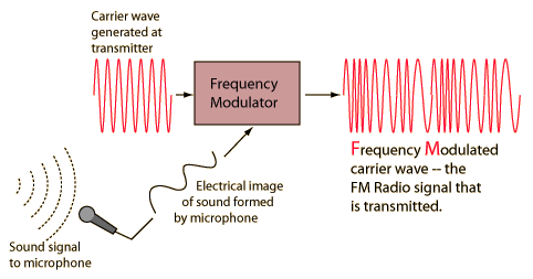 FM Radio![]() FM radio uses the electrical image of a sound source to modulate the frequency of a carrier wave. At the receiver end in the detection process, that image is stripped back off the carrier and turned back into sound by a loudspeaker.