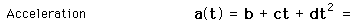 Time Dependent Acceleration If a time dependent acceleration can be expressed as a polynomial in time, then the velocity and position can be obtained, provided the appropriate initial conditions are known. Allowing the acceleration to have terms up to the second power of time leads to the following motion equations for one dimensional motion.