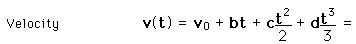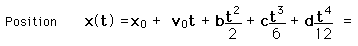 Motion Calculation, Variable AccelerationFor a variable acceleration which can be expressed as a polynomial in time, the position and velocity can be calculated provided their initial values are known. . |