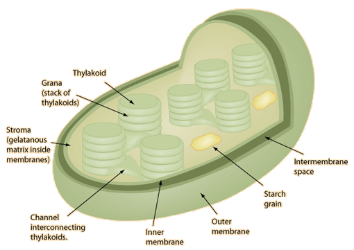 Chloroplasts![]() The sketch of the chloroplast above was made from an electron micrograph of a chloroplast from a higher order plant (Levy). Plants use energy from the sun in tiny energy factories called chloroplasts. Using chlorophyll in the process called photosynthesis, they convert the sun's energy into storable form in ordered sugar molecules such as glucose. In this way, carbon dioxide from the air and water from the soil in a more disordered state are combined to form the more ordered sugar molecules.