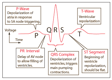 ElectrocardiogramsThe electocardiogram or ECG is a major diagnostic tool for the assessment of the health of the heart. It is a measurement taken at the surface of the skin which reflects the electrical phenomena in the heart when the SA node triggers the electrical sequence that controls heart action. ![]()