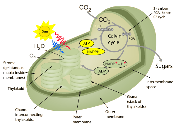 C3 PhotosynthesisPlants which use only the Calvin cycle for fixing the carbon dioxide from the air are known as C3 plants. In the first step of the cycle CO2 reacts with RuBP to produce two 3-carbon molecules of 3-phosphoglyceric acid (3-PGA). This is the origin of the designation C3 or C3 in the literature for the cycle and for the plants that use this cycle. ![]() The entire process, from light energy capture to sugar production occurs within the chloroplast. The light energy is captured by the non-cyclic electron transport process which uses the thylakoid membranes for the required electron transport. About 85% of plant species are C3 plants. They include the cereal grains: wheat, rice, barley, oats. Peanuts, cotton, sugar beets, tobacco, spinach, soybeans, and most trees are C3 plants. Most lawn grasses such as rye and fescue are C3 plants. C3 plants have the disadvantage that in hot dry conditions their photosynthetic efficiency suffers because of a process called photorespiration. When the CO2 concentration in the chloroplasts drops below about 50 ppm, the catalyst rubisco that helps to fix carbon begins to fix oxygen instead. This is highly wasteful of the energy that has been collected from the light, and causes the rubisco to operate at perhaps a quarter of its maximal rate. The problem of photorespiration is overcome in C4 plants by a two-stage strategy that keeps CO2 high and oxygen low in the chloroplast where the Calvin cycle operates. The class of plants called C3-C4 intermediates and the CAM plants also have better strategies than C3 plants for the avoidance of photorespiration.