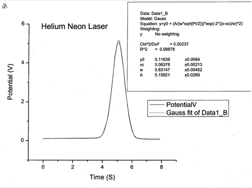 Various methods were explored for moving the second order diffraction grating maximum across a silicon light detector to get a plot of the light distribution with distance. The plots below for the helium-neon laser and red diode laser were obtained by moving the light detector through the diffraction maximum by hand. The shapes were then fit to a gaussian curve.