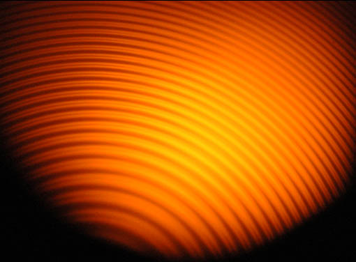 The measurement of the sodium doublet was assisted by t he fact that at one point in its range it produces an interference pattern with a distinct double-line characteristic. Throughout most of its range it exhibits the more regular interference pattern shown below. This makes it easier to advance the interference one order.