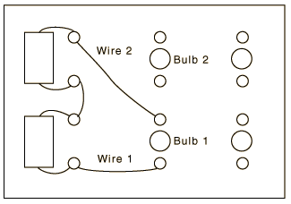 ELECTRIC CIRCUITSI. Qualitative investigation of series and parallel circuits An electric circuit consists of a completer closed path (or paths) for electric current. A "series" circuit has only one path for the electricity to follow. A "parallel" circuit has two or more paths for the electricity. You will first wire a simple circuit which will allow you to test materials for conductivity. Next some circuits will be wired to demonstrate the effects of series and parallel circuits on components in the circuit. ![]() PROCEDURE: 1. Connect your circuit board as indicated in the figure and note that the bulb will light when you touch the probes together. 2. Touch the ends of another wire with the probes. Note that the bulb lights brightly. This is an indication of good electrical conductivity since the current through the bulb is directly related to brightness. 3. Test several other items and record your results. Include a coin, your skin, and a beaker of water. Be sure that the probes a re in contact with the material being measured but not with each other. List the materials tested and your conclusions about their conductivity. 4. Rewire the circuit as shown in the diagram below. Is this a series or parallel circuit? ![]()