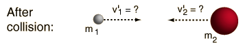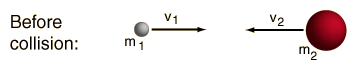 Collisions in One DimensionIn the general case of a one-dimensional collision between two masses, one cannot anticipate how much kinetic energy will be lost in the collision. Therefore, the velocities of the two masses after the collision are not completely determined by their velocities before the collision. However, conservation of momentum must be satisfied, so that if the velocity of one of the particles after the collision is specified, the other is determined.![]() A suggested exploration is to set the velocity of target mass m2 equal to zero and confirm that the fraction of kinetic energy retained in the perfectly inelastic case is equal to m1/(m1 + m2). This case is of practical value in the ballistic pendulum.