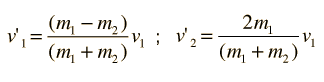 Elastic Headon CollisionThe head-on elastic collision relationships:![]() A positive velocity is taken as a velocity to the right in the calculation, so for leftward motion you should enter a negative number. The calculation assumes that a collision took place, but if you get a negative number for the velocity of approach above, this means you chose a scenario where no collision would actually happen. |