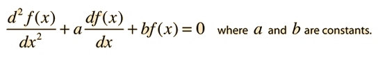 Second Order Homogeneous DEA linear second order homogeneous differential equation involves terms up to the second derivative of a function. For the case of constant multipliers, The equation is of the form ![]() and can be solved by the substitution ![]() The solution which fits a specific physical situation is obtained by substituting the solution into the equation and evaluating the various constants by forcing the solution to fit the physical boundary conditions of the problem at hand. Substituting gives ![]() which leads to a variety of solutions, depending on the values of a and b. In physical problems, the boundary conditions determine the values of a and b, and the solution to the quadratic equation for λ reveals the nature of the solution. Case I: Two real roots For values of a and b such that ![]() ![]() Case II: A real double root If a and b are such that ![]() ![]() Case III: Complex conjugate roots For values of a and b such that ![]() ![]() The solution to the homogeneous equation is important on its own for many physical applications, and is also a part of the solution of the non-homogeneous equation. Applications |