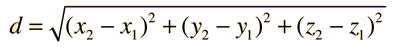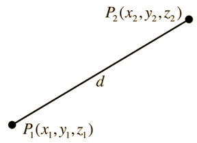 The distance between two points