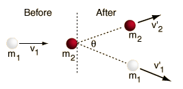 Elastic CollisionsAn elastic collision is defined as one in which both conservation of momentum and conservation of kinetic energy are observed. This implies that there is no dissipative force acting during the collision and that all of the kinetic energy of the objects before the collision is still in the form of kinetic energy afterward. For macroscopic objects which come into contact in a collision, there is always some dissipation and they are never perfectly elastic. Collisions between hard steel balls as in the swinging balls apparatus are nearly elastic. "Collisions" in which the objects do not touch each other, such as Rutherford scattering or the slingshot orbit of a satellite off a planet, are elastic collisions. In atomic or nuclear scattering, the collisions are typically elastic because the repulsive Coulomb force keeps the particles out of contact with each other. Collisions in ideal gases are very nearly elastic, and this fact is used in the development of the expressions for gas pressure in a container.