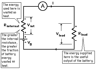 The values for battery voltage, load resistance, and internal resistance may be changed in the exploratory calculation below. Default values will be entered for any one of those values left unspecified, typical of the battery example, but any of those values may be changed. |