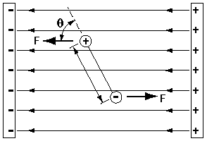 Torque on Electric DipoleThe torque produced on an electric dipole by an electric field can be expressed as a vector product with direction given by the right hand rule.