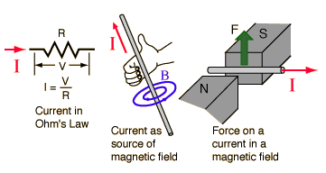 Electric CurrentElectric current is the rate of charge flow past a given point in an electric circuit, measured in Coulombs/second which is named Amperes. In most DC electric circuits, it can be assumed that the resistance to current flow is a constant so that the current in the circuit is related to voltage and resistance by Ohm's law. The standard abbreviations for the units are 1 A = 1C/s. ![]()