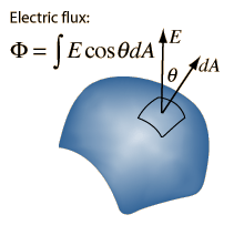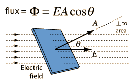 Electric FluxThe concept of electric flux is useful in association with Gauss' law. The electric flux through a planar area is defined as the electric field times the component of the area perpendicular to the field. If the area is not planar, then the evaluation of the flux generally requires an area integral since the angle will be continually changing.