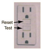 The GFI has a "Test" button which causes a small difference between "hot" and neutral currents to test the device. In an example given by John de Armond, the test button put the 120 volt supply across a 14.75 K resistor, producing a current of 8.2 mA. The UL requirement for a GFI is that it trip when there is 5 mA of leakage current. There is also a reset button to use after it has been tripped.