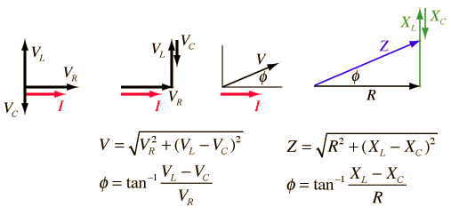 Phasor DiagramsIt is sometimes helpful to treat the phase as if it defined a vector in a plane. The usual reference for zero phase is taken to be the positive x-axis and is associated with the resistor since the voltage and current associated with the resistor are in phase. The length of the phasor is proportional to the magnitude of the quantity represented, and its angle represents its phase relative to that of the current through the resistor. The phasor diagram for the RLC series circuit shows the main features. ![]() Note that the phase angle, the difference in phase between the voltage and the current in an AC circuit, is the phase angle associated with the impedance Z of the circuit.