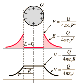 Since the electric field is equal to the rate of change of potential, this implies that the voltage inside a conductor at equilibrium is constrained to be constant at the value it reaches at the surface of the conductor. A good example is the charged conducting sphere, but the principle applies to all conductors at equilibrium.