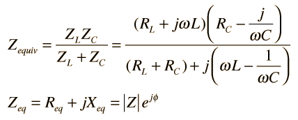 When the complex impedances of the branches of the parallel RLC circuit are combined, the equivalent impedance is of the form