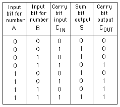 The full adder as a logical unit must obey the truth table at left.