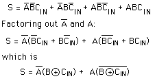 The full adder logic relationship from the truth table at left is: