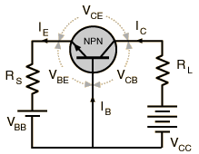 This configuration is used for high frequency applications because the base separates the input and output, minimizing oscillations at high frequency. It has a high voltage gain, relatively low input impedance and high output impedance compared to the common collector.