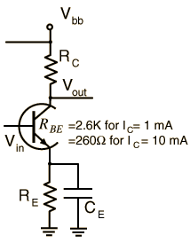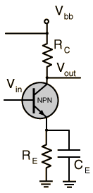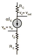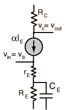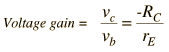 With the bypass capacitor in place, the voltage gain is dertemined by the collector resistor RC and the effective resistance of the transistor rE.