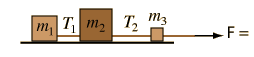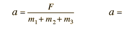 The force F is the only net force acting on the system of three masses, which are constrained to accelerate together. Therefore Newton's 2nd law gives the acceleration: