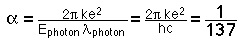 Another quantity with those dimensions which occurs naturally in the interaction of radiation with matter is .A dimensionless constant which characterizes the electromagnetic force is .This coupling constant is also called the "fine structure constant" since it shows up in the description of the fine structure of atomic spectra. It appears naturally in the equations for many electromagnetic phenomena.