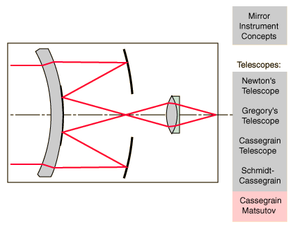 Catadioptric SystemsCatadioptric systems are those which make use of both lenses and mirrors for image formation. This constrasts with catoptric systems which use only mirrors and dioptric systems which use only lenses. ![]() |