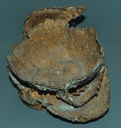 One of the more unusual forms is exhibited in this cross-section of a post which served as a support in a copper mine. It has been partially infilled and replaced by copper from the ground water in which it was submerged. The post is about 12 cm in diameter.