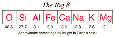 Elements Abundant in Igneous RockEight elements make up about 98% by weight of most magmas from which igneous rocks are made. Click on any element for further details. ![]() The dominance of oxygen and silicon in the Earth's crust gaurantees that most igneous rocks are made up of silicate minerals. The main differences in the composition of igneous rocks are the variations in the other six elements. Beyond the "big 8", manganese and titanium are present in small concentrations in magma and therefore appear in a number of minerals.