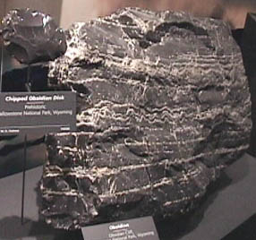 This rock is on display in the Smithsonian Museum of Natural History. The source is listed as the Obsidian Cliff, Yellowstone, Wyoming. The sample is 60-70 cm across.