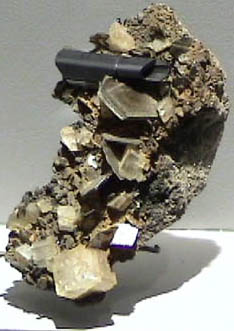 This sample of rutile is from Milholland's Mill, Alexander County, North Carolina. It measures about 5x9 cm and is found with muscovite and orthoclase.
