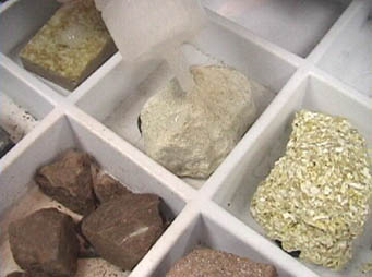 A third sample, which appears to be a coarse collection of shell fragments, is expected to show the presence of carbonate. The acid produces the expected bubbles.