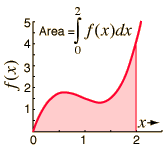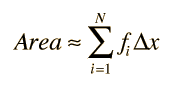 Area Under a Curve![]() Formulating the area under a curve is the first step toward developing the concept of the integral. The area under the curve formed by plotting function f(x) as a function of x can be approximated by drawing rectangles of finite width and height f equal to the value of the function at the center of the interval. ![]() If the width of the rectangles is made smaller, then the number N is larger and the approximation of the area is better. Show area integral for simple geometries.Show area approximation of an integral. |