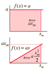 Area Integral ExamplesArea examples with simple geometry can reinforce the idea of the integral as the area under a curve. For a function which is just a constant a, then the area formed by the function is just a rectangle.