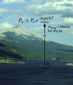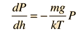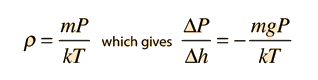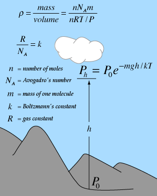 The development of the barometric formula makes use of a number of concepts from kinetic theory, such as the ideal gas law and the associated molecular constants. In the exponential, the two terms have the units of energy. The numerator mgh is gravitational potential energy and the term kT is thermal energy. |