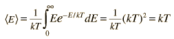Average Energy Integral: Boltzmann DistributionThe average energy integral for the distribution of energy among a collection of particles according to the Boltzmann distribution is: ![]() This integral may be evaluated using integration by parts. ![]() This technique is particularly appropriate for removing a linear term multiplying an exponential. ![]() |