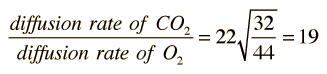 Graham's LawWhen gases are dissolved in liquids, the relative rate of diffusion of a given gas is proportional to its solubility in the liquid and inversely proportional to the square root of its molecular mass. Important in the transport of respiration gases is the relative diffusion rate of oxygen and carbon dioxide in the plasma of the human body. Carbon dioxide has 22 times the solubility, but is more massive (44 amu compared to 32 for oxygen). According to Graham's law, the relative rate of diffusion is given by ![]()
